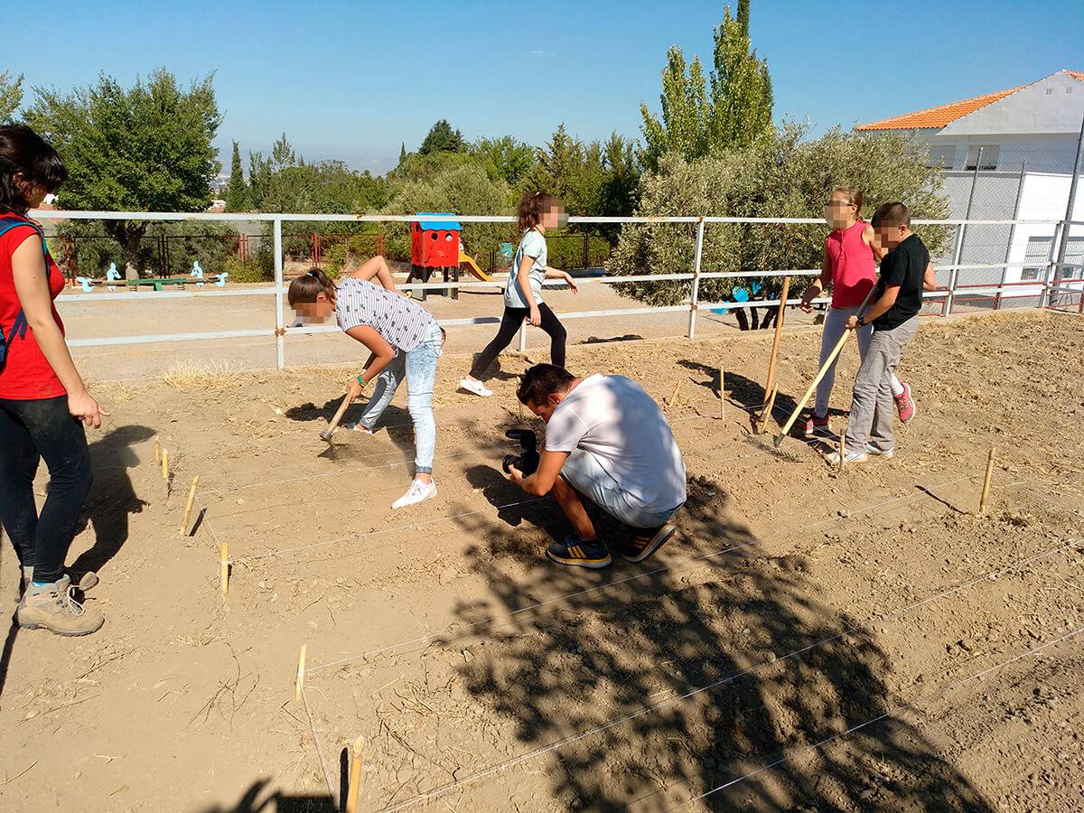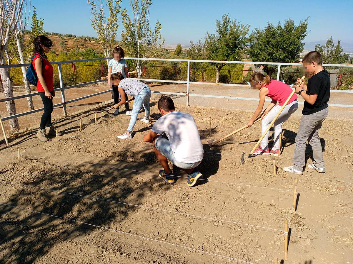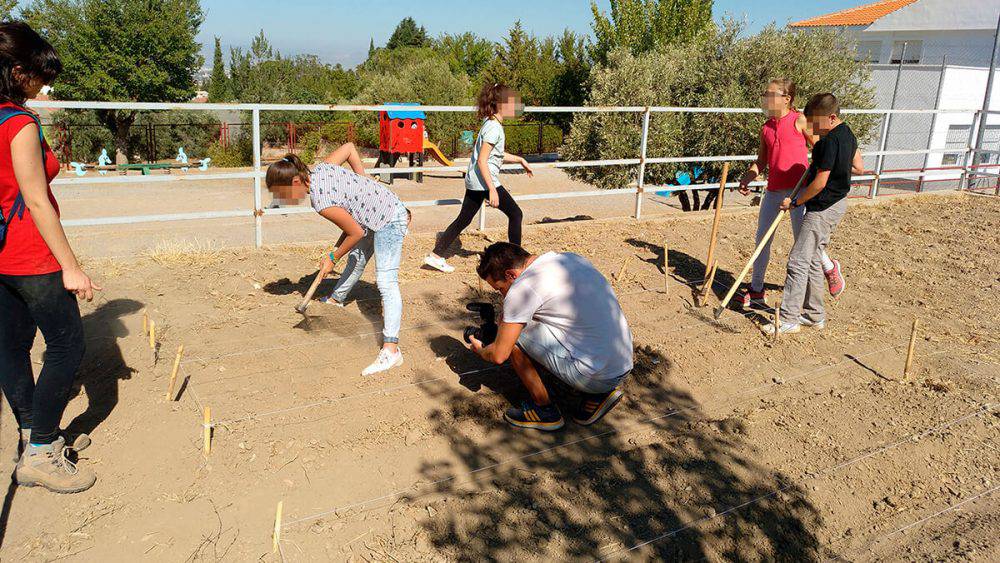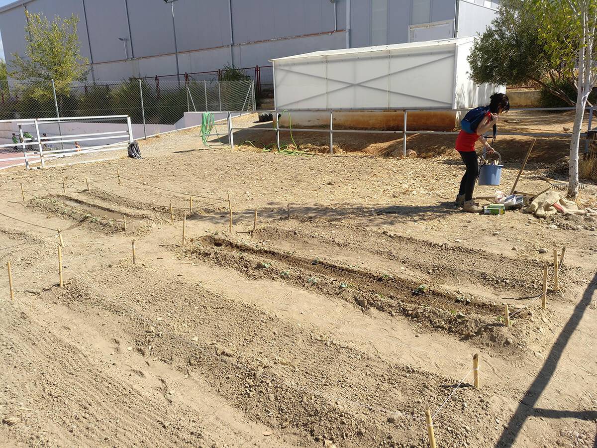 Es una de las dos actividades más importantes del primer periodo del programa, junto con el montaje de la compostera. En ella partiendo del terreno permeable seleccionado en el centro y después de las labores de alzado (arado) y abonado pasamos a realizar la división de las eras aplicando el método de “parades en crestall” idóneo para el manejo de huertos didácticos.