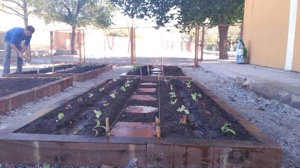 Es una de las dos actividades más importantes del primer periodo del programa, junto con el montaje de la compostera. En ella partiendo del terreno permeable seleccionado en el centro y después de las labores de alzado (arado) y abonado pasamos a realizar la división de las eras aplicando el método de “parades en crestall” idóneo para el manejo de huertos didácticos.
