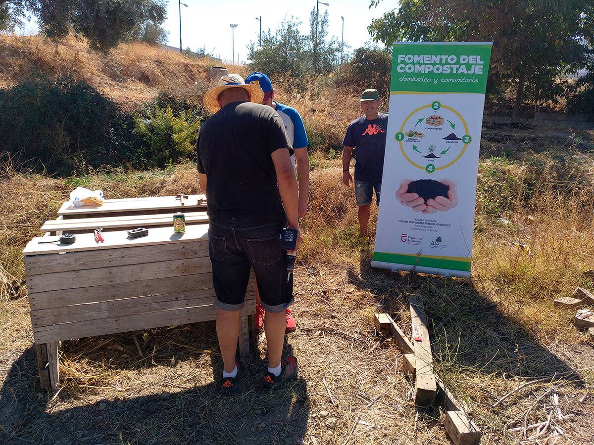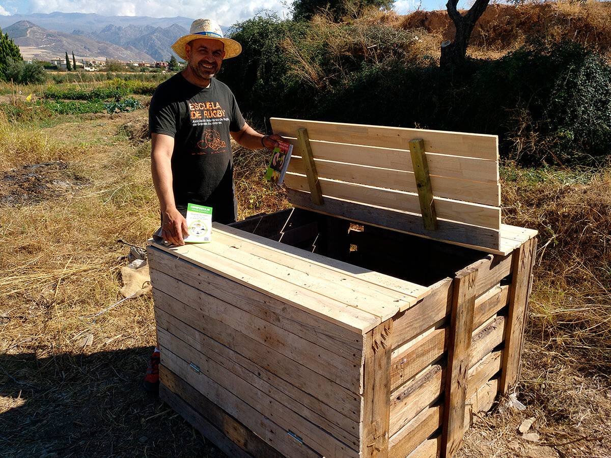 Para iniciar este proceso en el municipio de Otura, se ha realizado una actividad participativa de montaje de una compostera con palés en desuso en los huertos sociales, que será usada para incorporar los restos derivados de las cosechas.