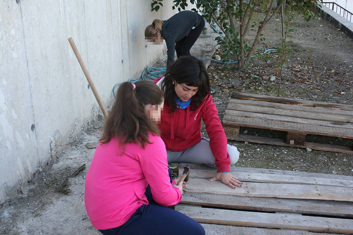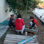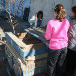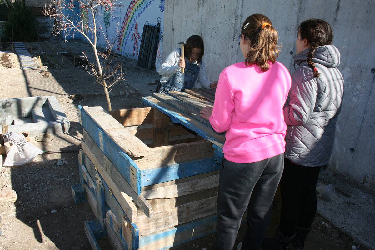 Esta es la segunda actividad más importante del periodo inicial del programa en el centro. En este taller se construye partiendo de materiales reciclados; palés de madera o contenedores desechados, una compostera de aproximadamente 1 m³ para descomponer la materia verde de los residuos de las meriendas de los escolares y restos vegetales de la jardinería de los ajardinados del Centro para obtener compost y nutrir los siguientes ciclos productivos del huerto.