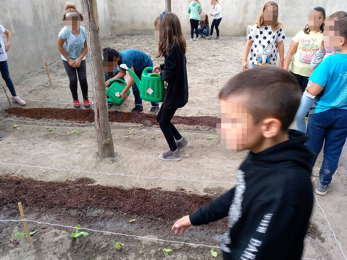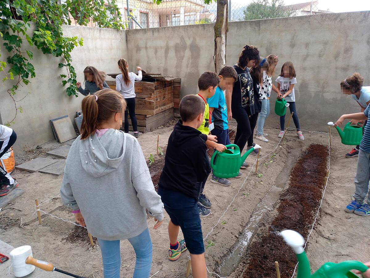 Siembra y plantación de habas y ajos en el huerto del colegio La Cruz