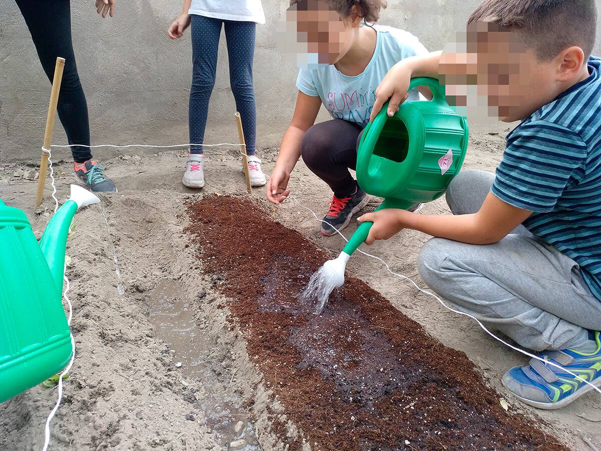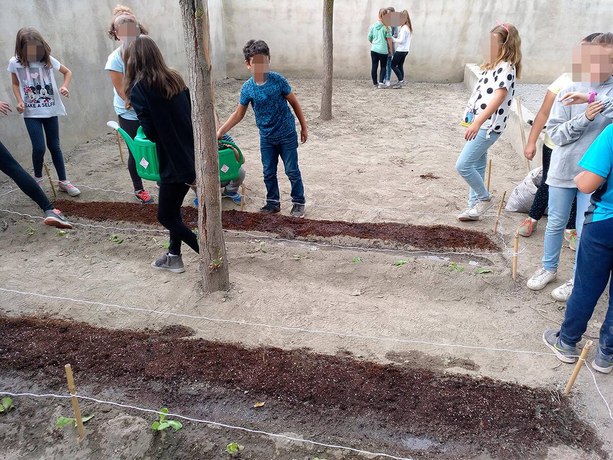 Supone la última actividad del ciclo de otoño y en ella se instalan dos cultivos tradicionales que nos sirven para trabajar diferentes competencias y conocimientos. Son dos cultivos que se mantienen durante gran parte del curso en el huerto y permite al alumnado realizar un seguimiento de ellos desde su incorporación al terreno hasta la recolección. Además de proporcionar un elemento vivo de investigación y exploración en el aula trabajamos conceptos como la reproducción de las plantas y la manera en la que se siembran y plantan