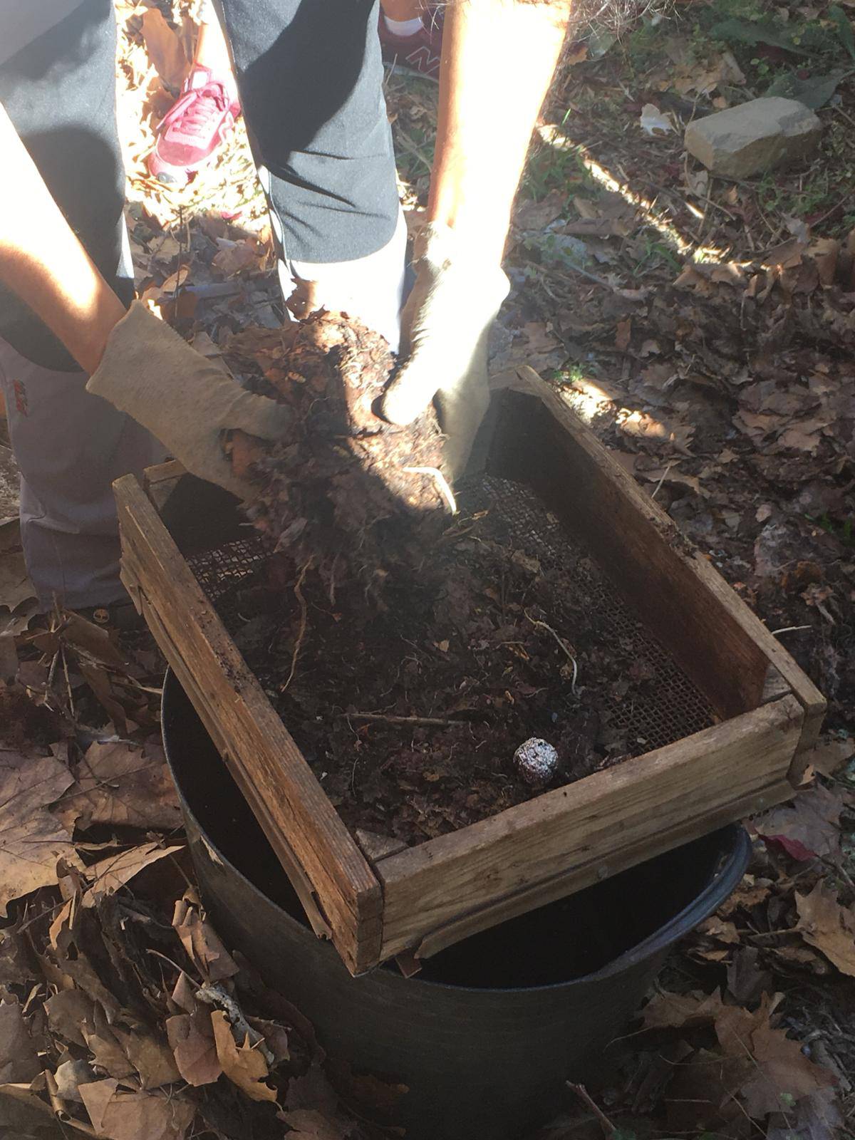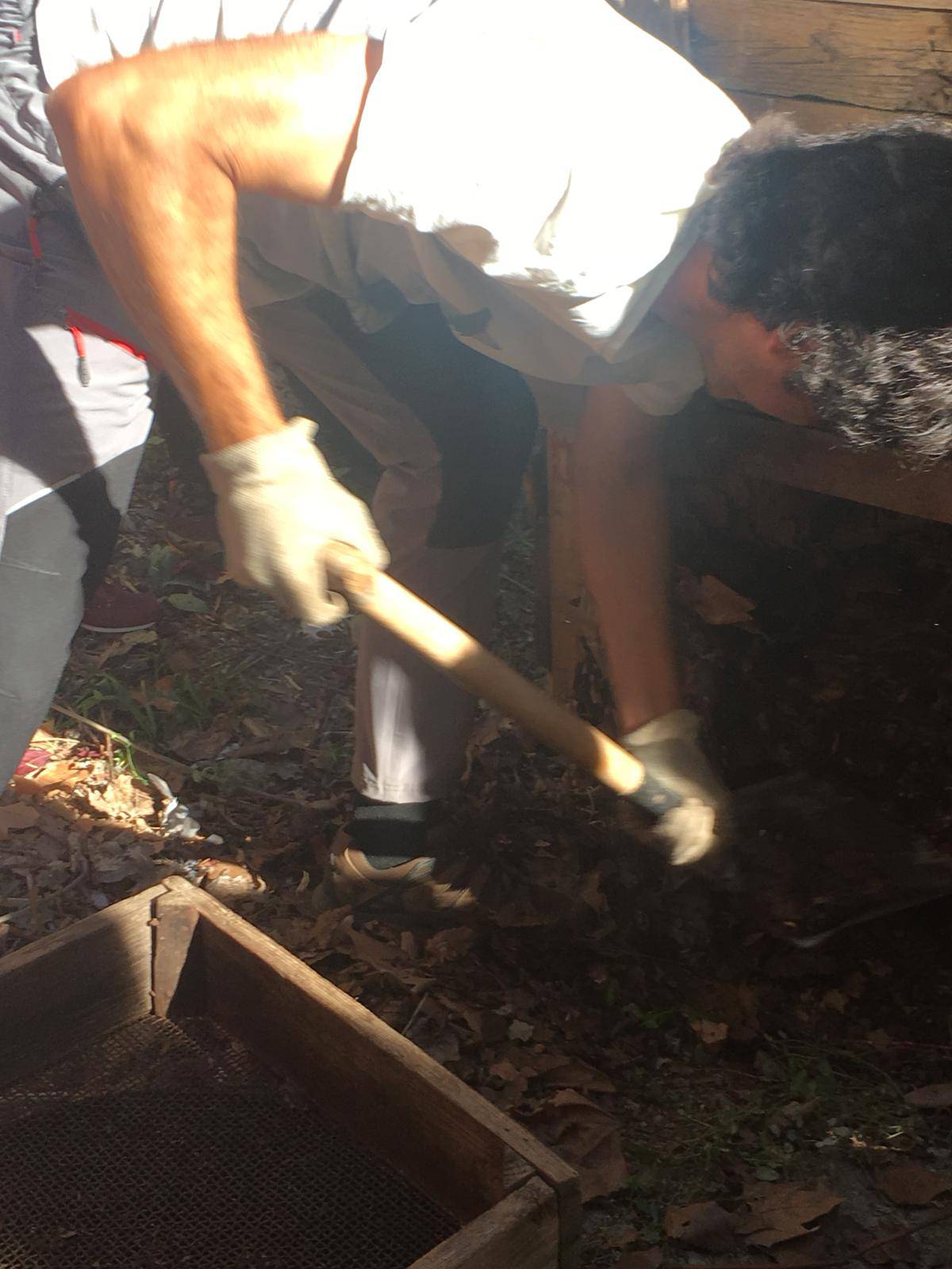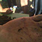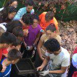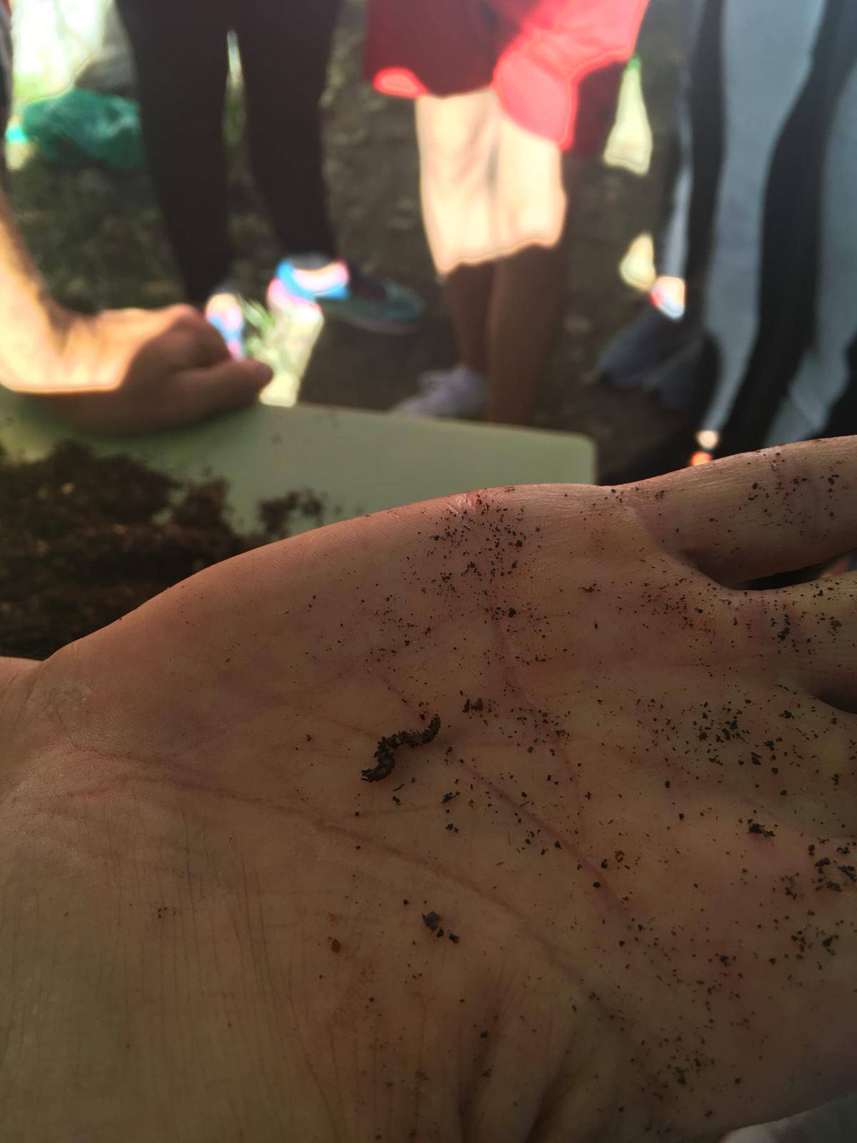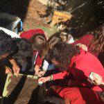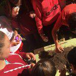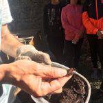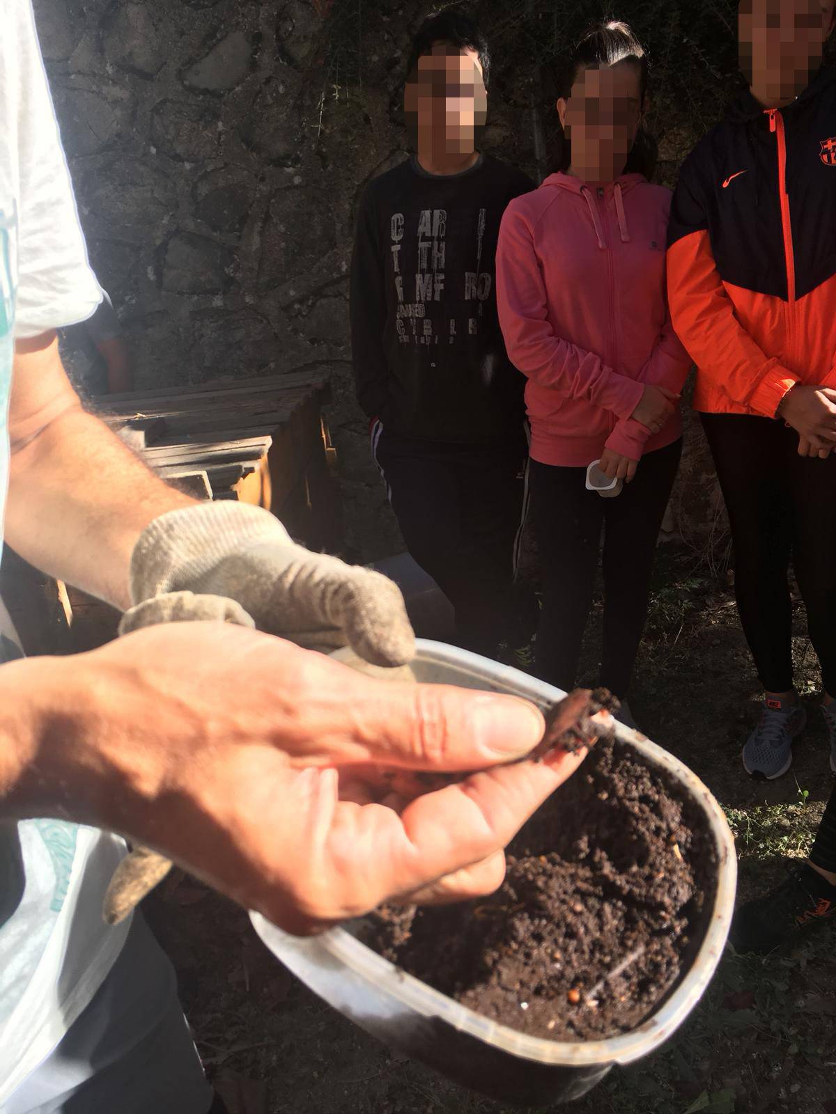 Los escolares han visitado el huerto para hacer una exploración de los habitantes del compost que está generándose en su compostera escolar, y confirmar así que es un sistema vivo. En ella viven organismos de muchos tipos diferentes, algunos visibles a simple vista, y otros a través de lupas o microscopios.